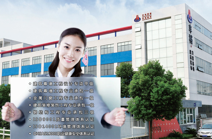 公司現(xiàn)具備建筑幕墻工程設(shè)計專項甲級資質(zhì)、建筑幕墻工程專業(yè)承包一級、建筑裝修裝飾工程專業(yè)承包一級、鋼結(jié)構(gòu)工程專業(yè)承包三級、建筑門窗行業(yè)資格產(chǎn)品制造一級、建筑門窗行業(yè)資格產(chǎn)品安裝一級、江蘇省標準化窗推廣證企業(yè)。